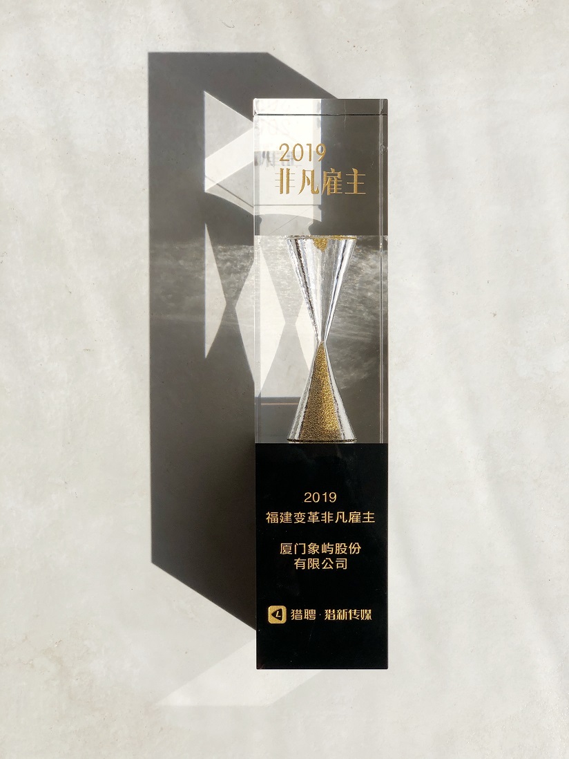 12月13日,由國內(nèi)精英職業(yè)發(fā)展平臺(tái)獵聘網(wǎng)主辦的2019非凡雇主“非凡之夜頒獎(jiǎng)盛典”在廣州舉行。象嶼股份從上萬余家企業(yè)中脫穎而出,入選“2019非凡雇主TOP 100” 及“2019福建變革非凡雇主”。