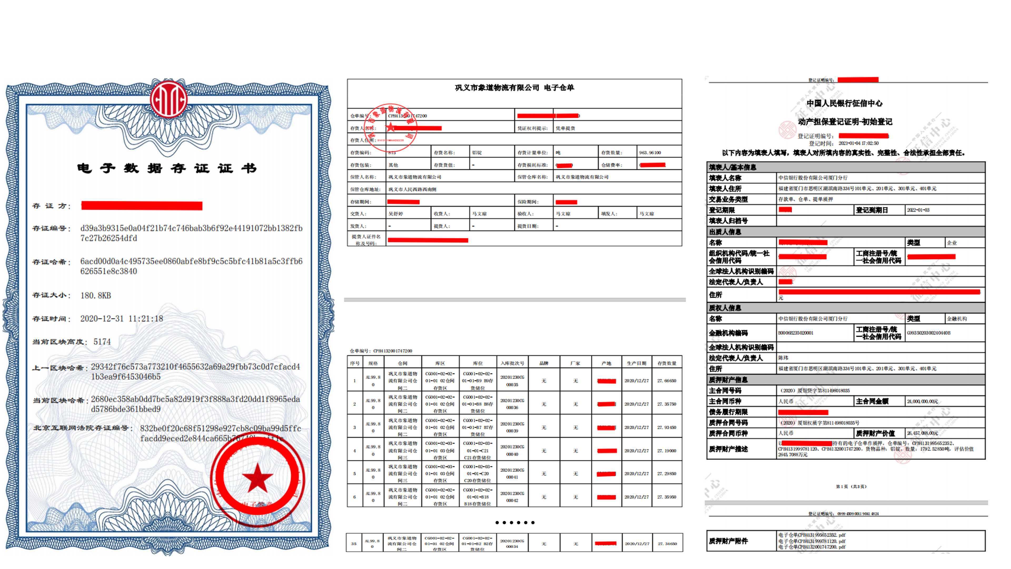 ▲ 區(qū)塊鏈存證、電子倉單及中登網(wǎng)質押登記